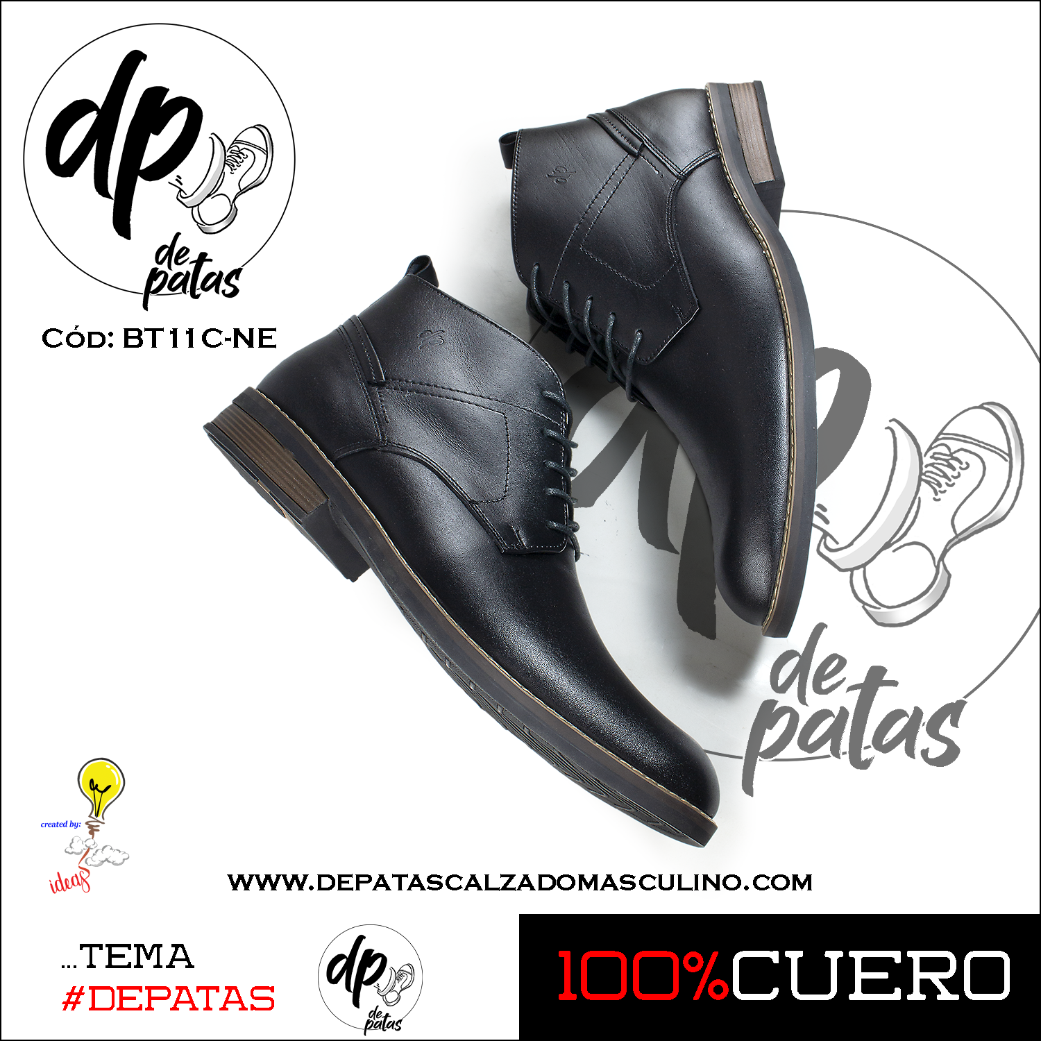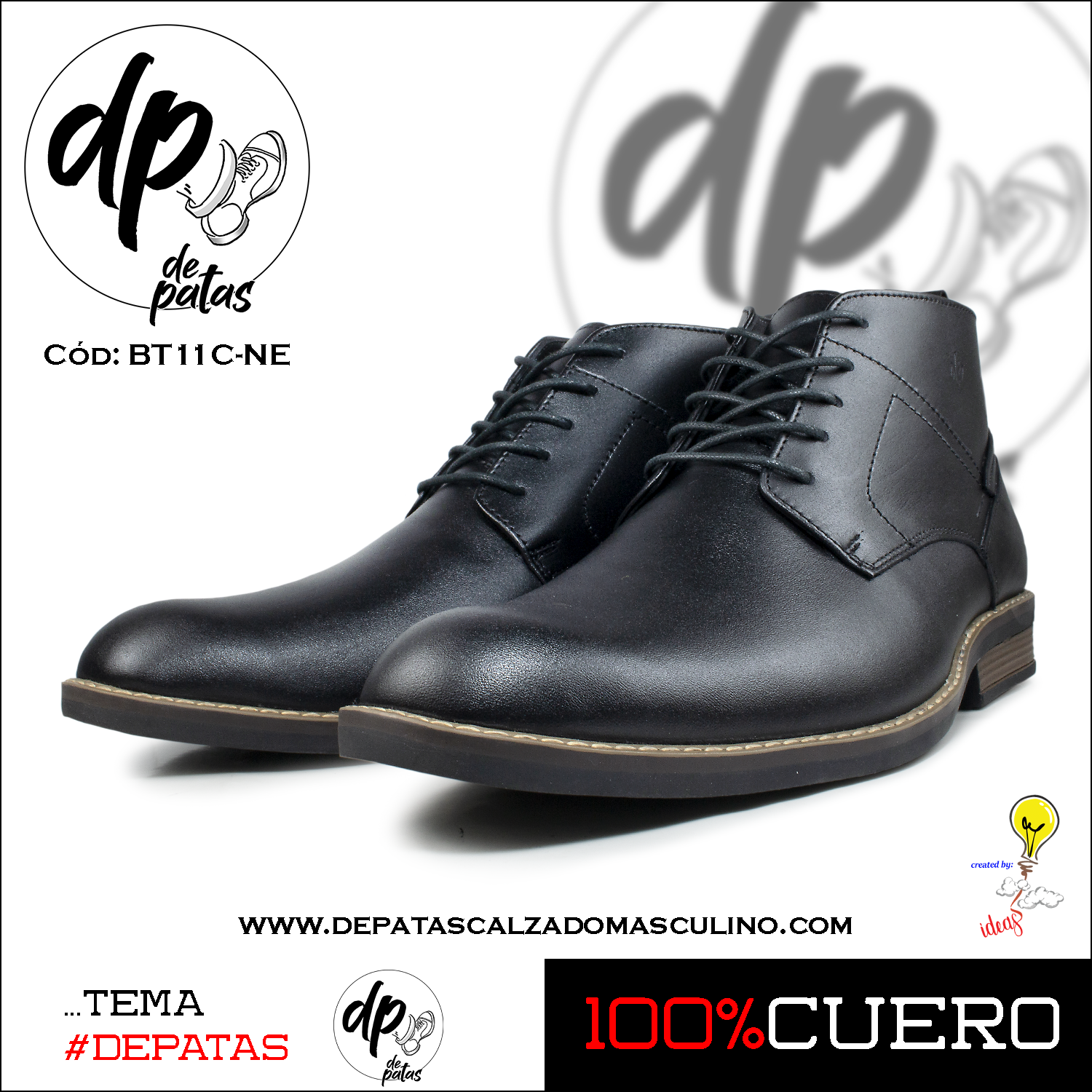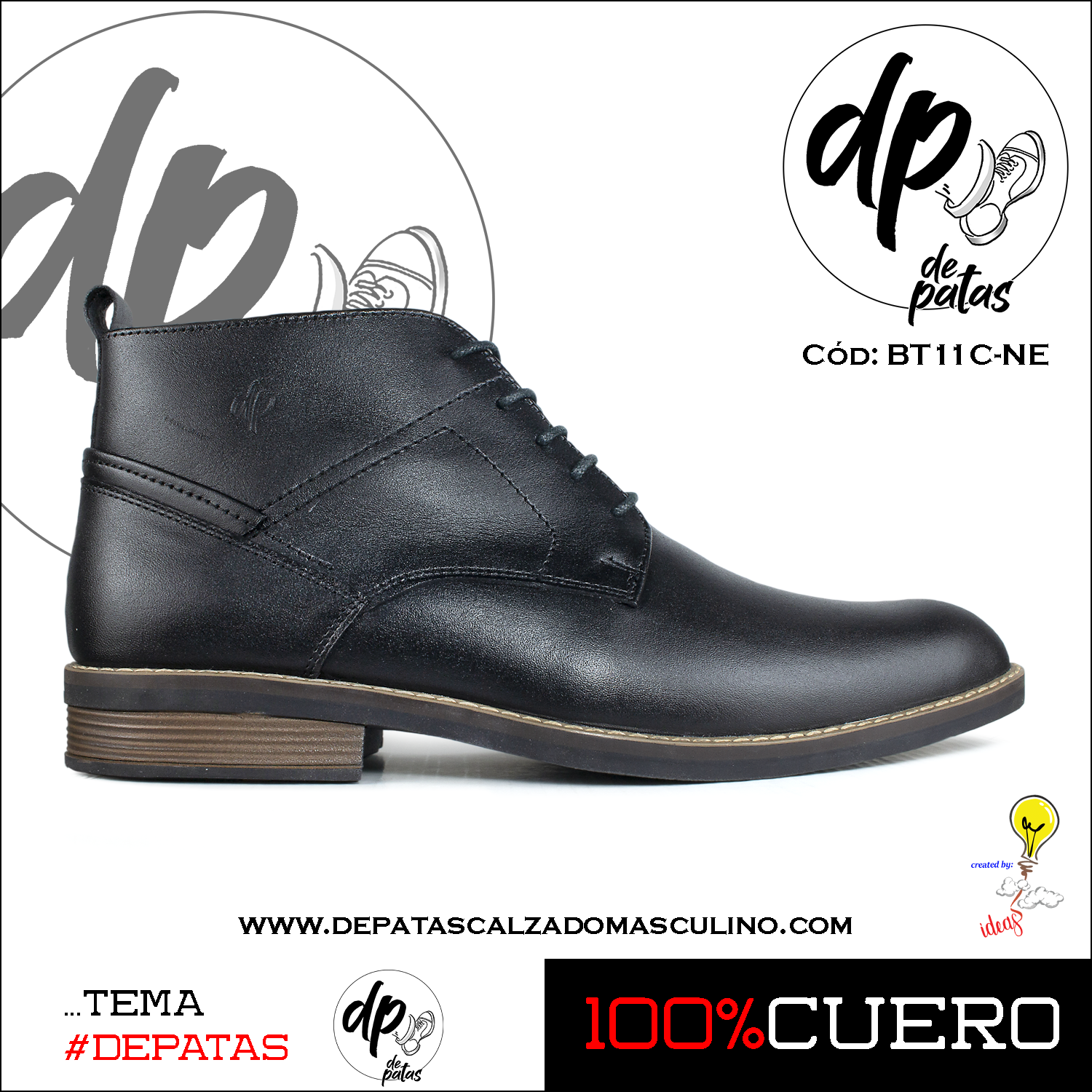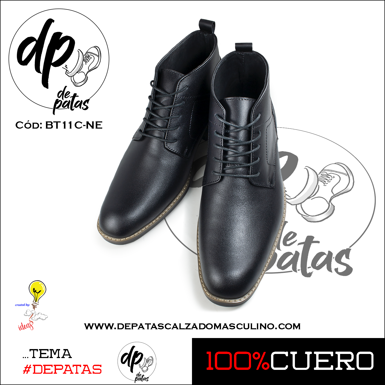 Descubre el botín perfecto para tus días de estilo y comodidad. Con capellada de cuero lustrable en elegante negro y suela de caucho con taco partido, este botín de vestir ofrece durabilidad y un toque sofisticado. Su forro y plantilla de badana aseguran suavidad y frescura, ideal para quienes necesitan una horma grande sin perder el estilo.
