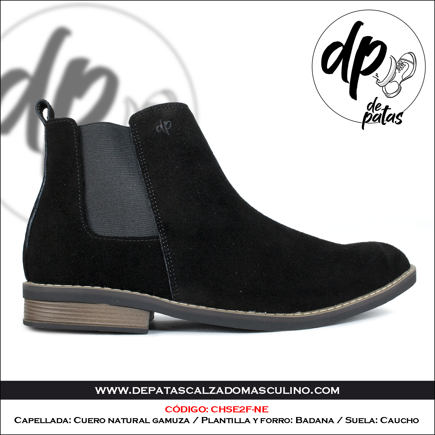 Botín Chelsea de fabricación peruana que representa la tradición zapatera de Trujillo. Elaborado en cuero natural con acabado gamuza, ofrece una textura suave y un aspecto refinado. Forro y plantilla en badana brindan calidez y transpirabilidad. Su color negro atemporal lo convierte en una pieza versátil que complementa cualquier atuendo con elegancia y sobriedad. Calidad artesanal con el sello de la excelencia peruana.