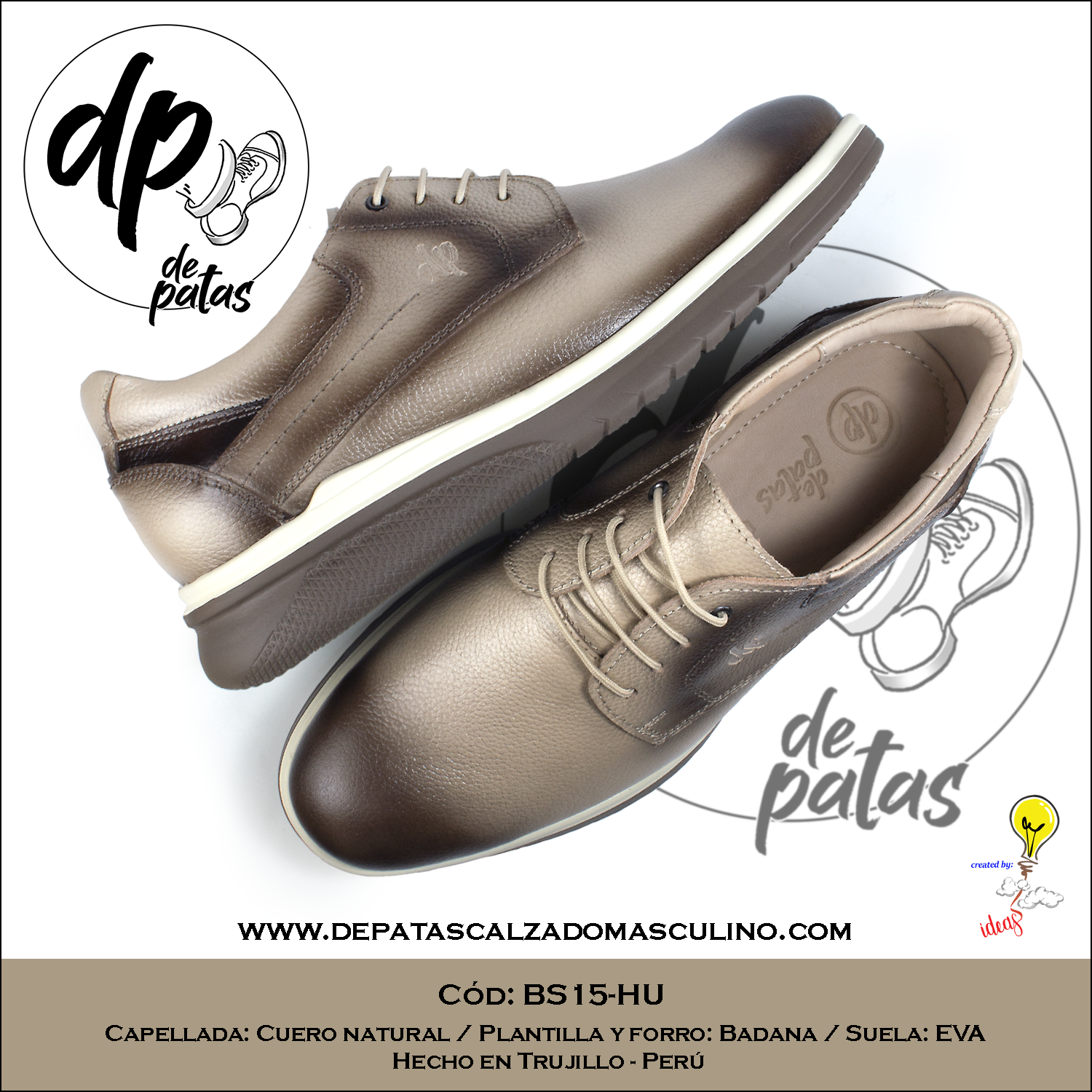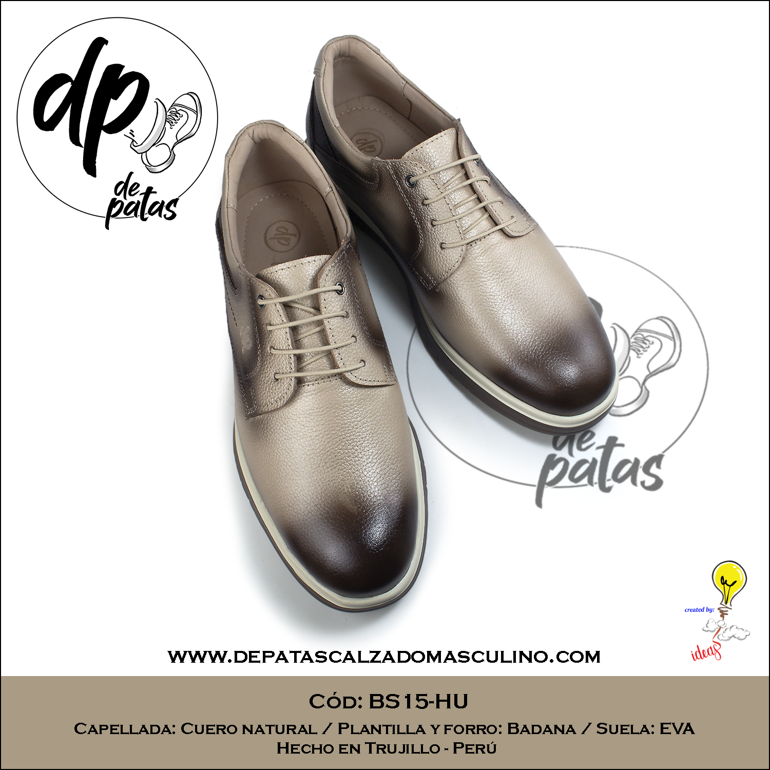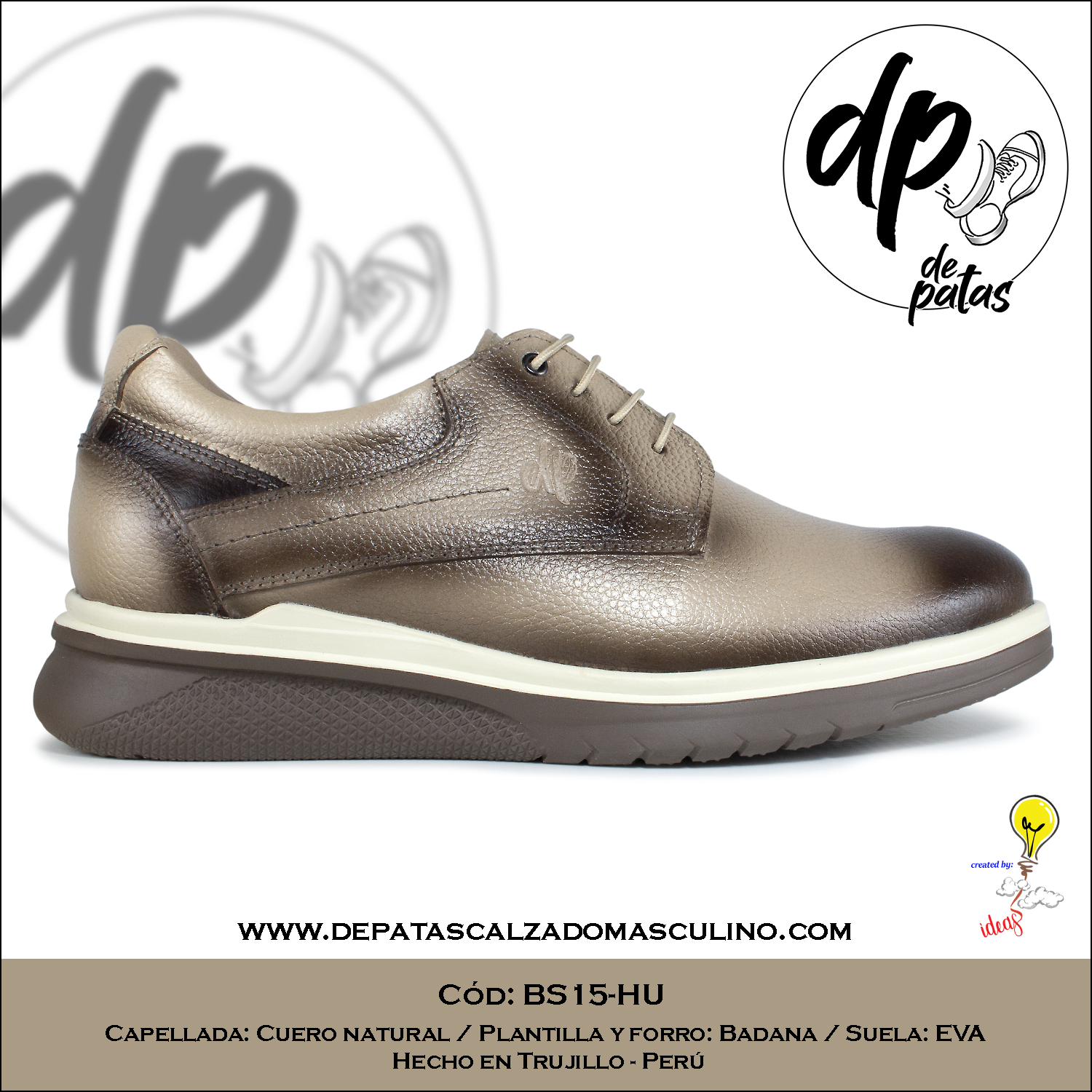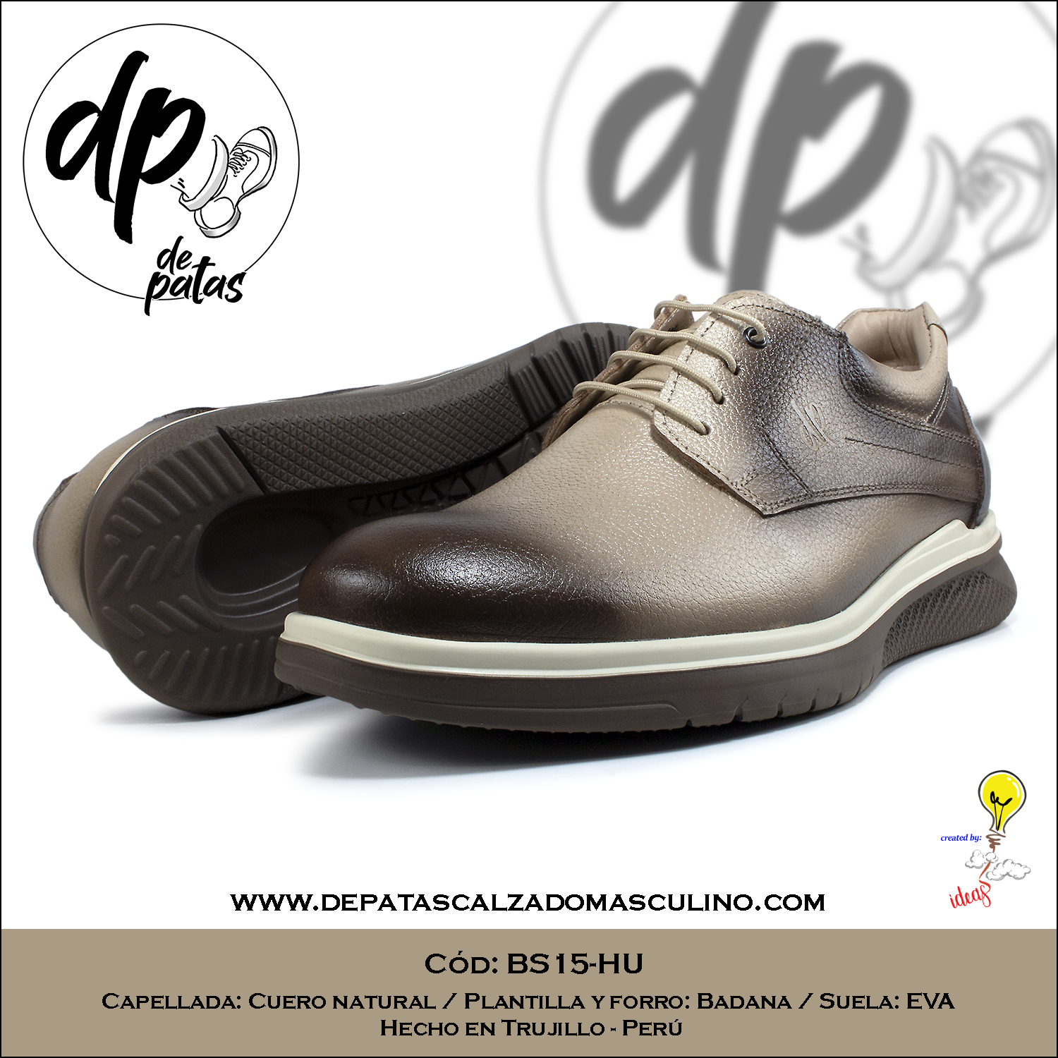Derby casual, plantilla y forro de badana, suela EVA (BS15-HU) horma exacta