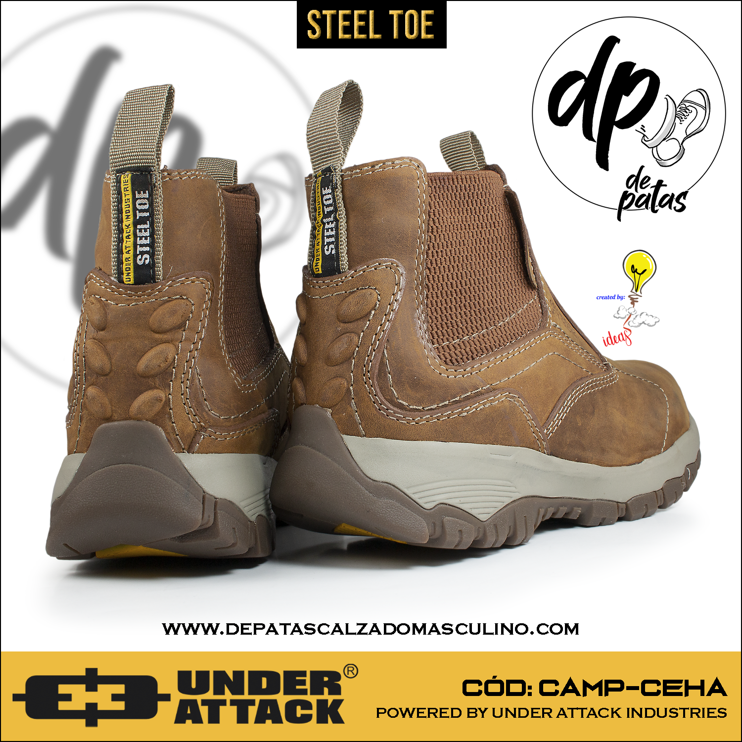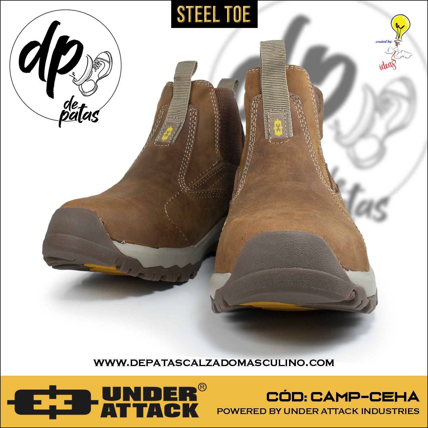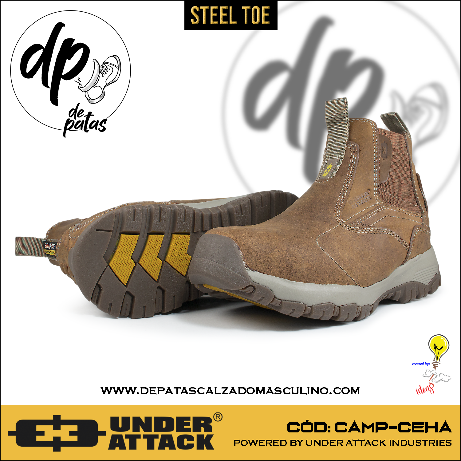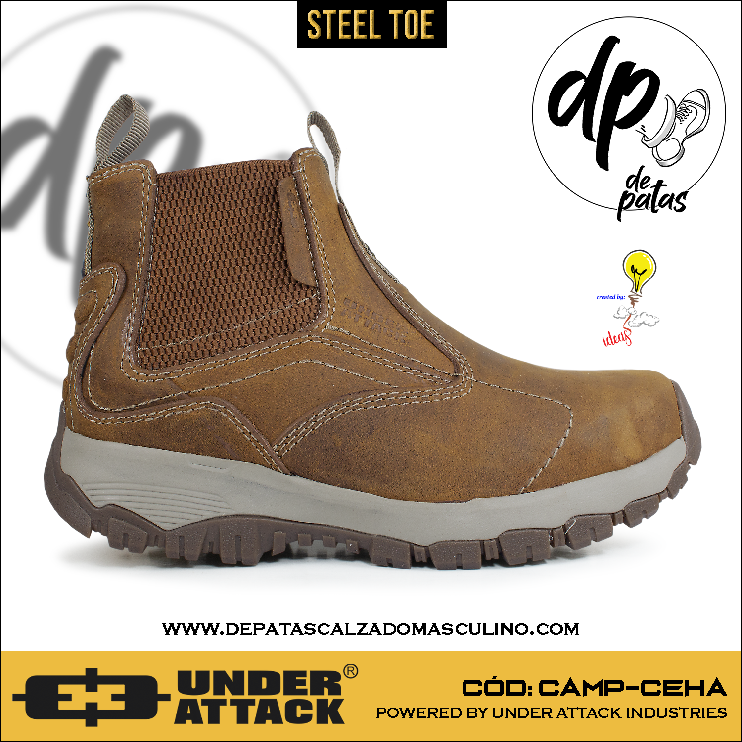 Descubre el botín industrial Under Attack, diseñado para quienes no temen enfrentar cualquier desafío. Con punta de acero para máxima protección y capellada de cuero natural con acabado nobuk en color habano, combina resistencia y estilo. Su suela corrida de EVA con caucho ofrece comodidad y durabilidad, mientras que el forro textil y plantilla de PU aseguran frescura y soporte. Ideal para pies con horma grande, este botín es tu aliado perfecto para el trabajo y la aventura. ¡Pisa fuerte y con actitud!