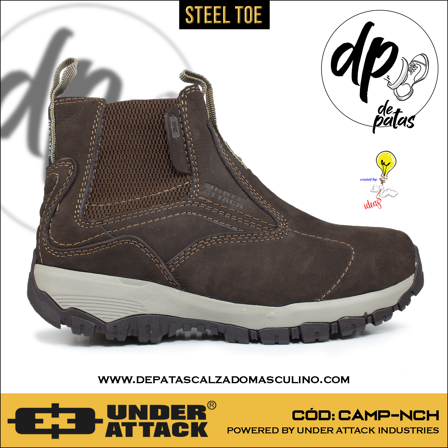 Este botín industrial en color chocolate combina estilo y protección con su punta de acero resistente. Su capellada de cuero natural con acabado nobuk ofrece durabilidad y un look sofisticado, mientras que la suela corrida de EVA con caucho garantiza comodidad y agarre. El forro textil y la plantilla de PU aportan frescura y soporte, ideal para jornadas largas. Además, su horma grande asegura un ajuste cómodo para quienes necesitan un poco más de espacio. ¡Perfecto para enfrentar el día con seguridad y estilo!