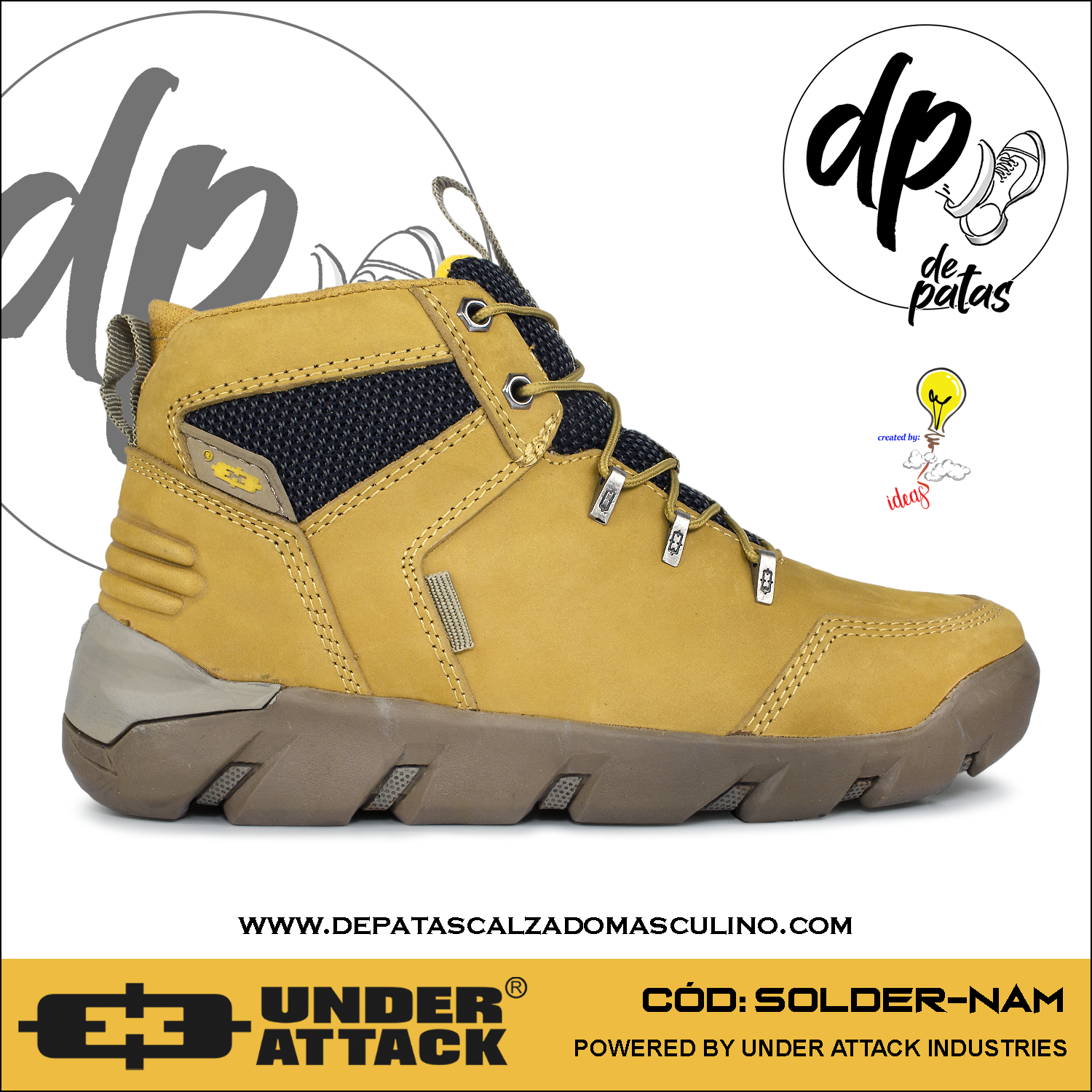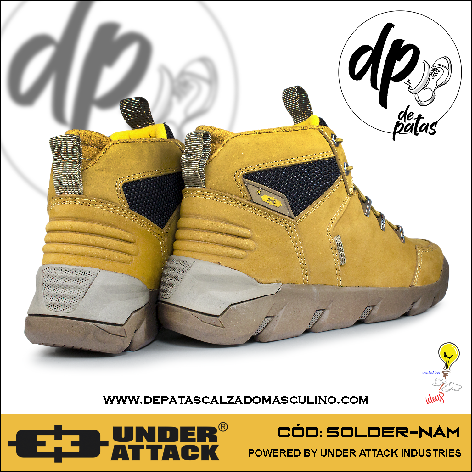 Descubre el botín perfecto para tus aventuras de trekking: Under Attack. Su capellada de cuero natural con acabado nobuk en vibrante amarillo no solo destaca, sino que también ofrece durabilidad y estilo. La suela corrida de caucho garantiza tracción segura en cualquier terreno, mientras que el forro textil y la plantilla de PU brindan comodidad durante todo el día. Con una horma exacta, sentirás que están hechos a tu medida. ¡Prepárate para conquistar caminos con actitud y diversión!