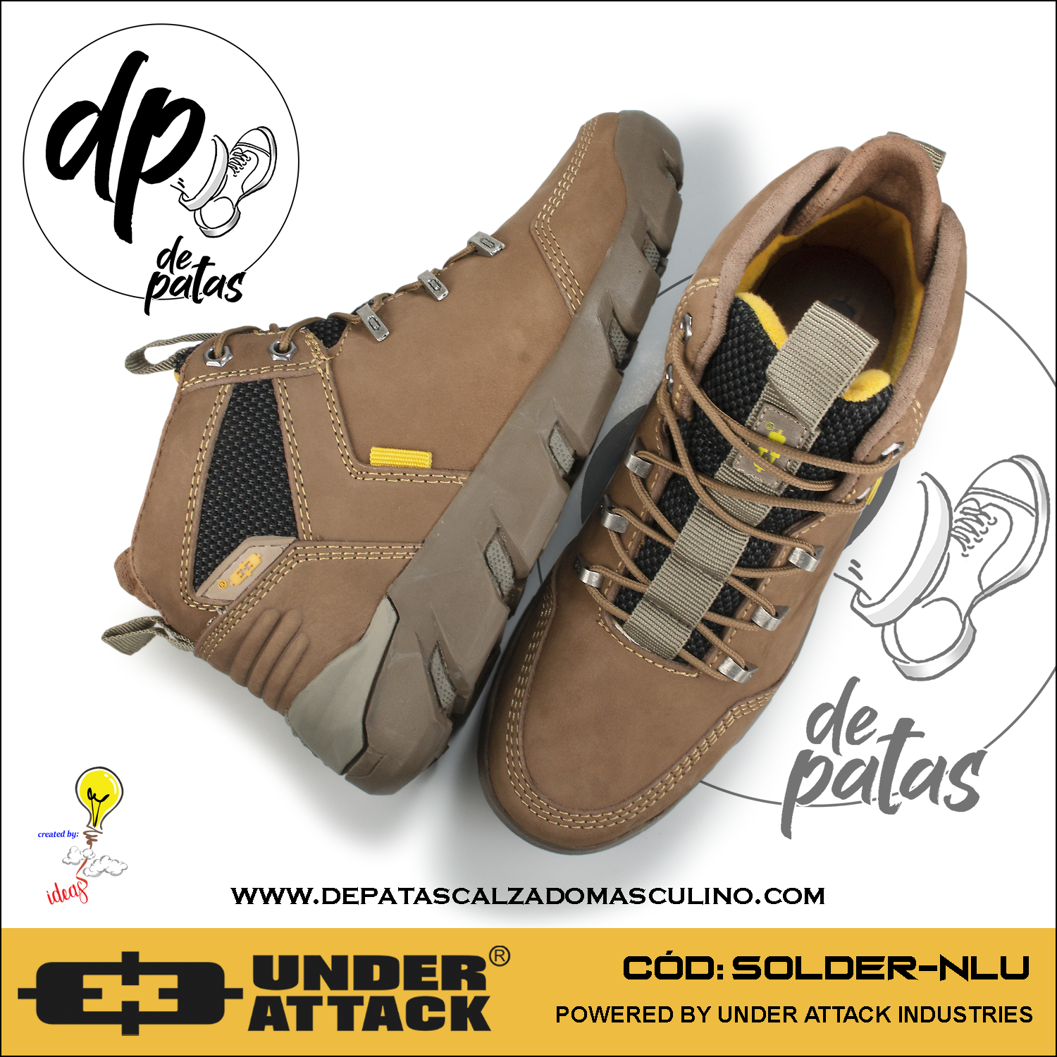 Descubra el botín Under Attack con horma exacta, diseñado para quienes buscan rendimiento y sofisticación. Su capellada de cuero natural con acabado nobuk ofrece un tacto suave y durabilidad, mientras la suela corrida de caucho garantiza tracción y estabilidad en terrenos exigentes. Con forro textil y plantilla de PU, brindan comodidad prolongada, ideal para actividades de trekking sin sacrificar estilo ni funcionalidad. Perfecto para un look moderno y resistente en cualquier aventura.